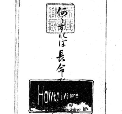 巻末なるトーマス・パーの伝は歴史専攻の文学士河野元三君が余の為に大学の図書館及び其他に於いて、色々の書物より調べて呉れられた深き情けの結果である。故にパーに就ての記録は恐らく本書程精細な物は無いであろう。これ本書の特色として窃かに誇る所否長寿を保たうといふ人は之を模範とせられたいものである。